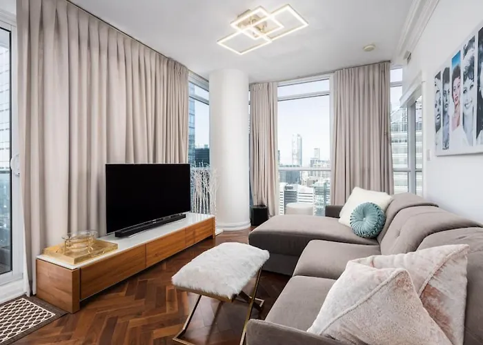 La villa Pristine Modern 2Br Condo Private Bbq And Balcony Toronto offre un facile accesso a varie attrazioni della città, come partita professionistica di sport, situata a circa 5 minuti a piedi.